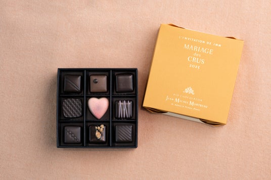厳選したオーガニック素材にこだわるジャン=ミッシェル・モルトローから登場する「マリアージュ・デ・クル」アソート。酸味や苦みなどの個性を引き出しながら、ドミニカ共和国・ペルー・グレナダのカカオを使用しています。フランスの希少な一番塩を使用したガナッシュやキャラメル、ロースト加減にもこだわった香りや濃厚な風味のナッツのプラリネ、ドイツ産のバラを贅沢に使用したハートのローズショコラの華やかなアロマをお楽しみいただけます。