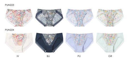 品番:PUN223/PUN224 サイズ:M/L カラー:IV/BU/PU/GR 価格:PUN223.¥2,310(税込)/PUN224.¥1,980(税込)