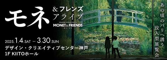 神戸のKIITO(デザイン・クリエイティブセンター神戸)を会場に、2025年1月4日から3月30日まで開催される没入型展覧会。本展では、印象派の巨匠クロード・モネをはじめ、彼の仲間たちの名作が最新のデジタル技術で鮮やかに蘇ります。絵画と光、映像や音楽が融合したアートを体感できる新しい形の展覧会として、多くのアートファンに注目されています。