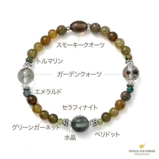ハワイ発祥の天然石アクセサリーブランド「マルラニハワイ」より、個性あふれるグリーンの天然石各種を、それぞれのエネルギーを活かして組み上げたパワーストーンブレスレット「エバーグリーン」を再販開始いたしました。
