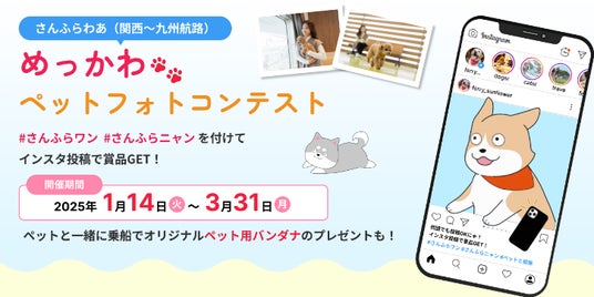 株式会社商船三井さんふらわあ(代表取締役:牛奥 博俊)は、2025年1月14日(火)~3月31日(月)に『さんふらわあ めっかわペットフォトコンテスト』を開催いたします。