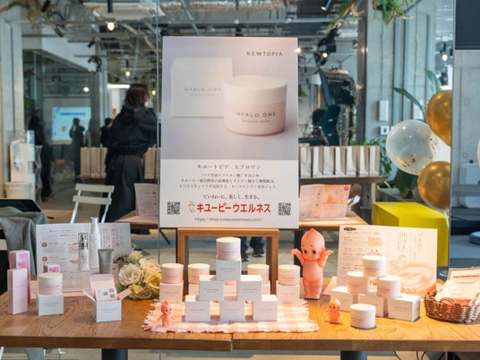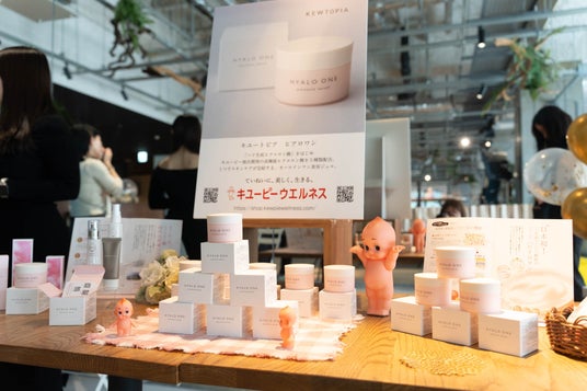 会場内には、入口付近に「キユートピア ヒアロワン」が展示されたディスプレイブースがあり、多くの来場者が足を止め、かわいく飾られたブースの写真を撮ったり、「キユーピーが美容事業に参画しているのを知らなかった」「オールインワン美容ジェルならスキンケアが1つで済むのでありがたい」といったポジティブな声が上がりました。