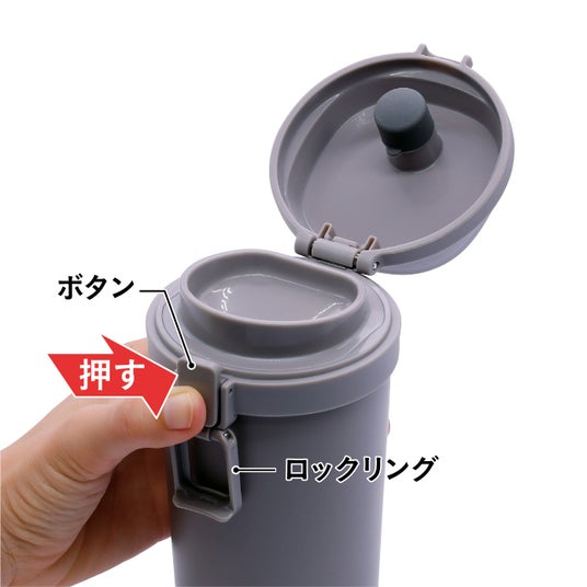 密栓タイプでしっかりロック出来るワンタッチ式なので、ボトルのようにバッグに入れて持ち運んだり、ドライブのお供にもおすすめです。