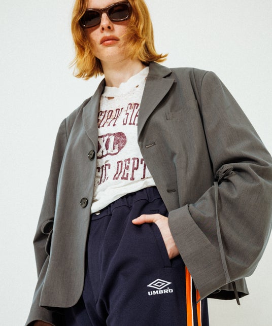 24SSにご好評いただいたニットのジャージ型ジャケットをアップデート。ラインにパイピングを施し、スポーティー要素をアクセントに加えました。