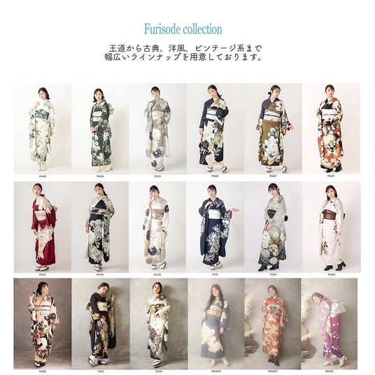 振袖、コーディネート、価格トータルでご満足いただけるようラインナップをご用意しております。