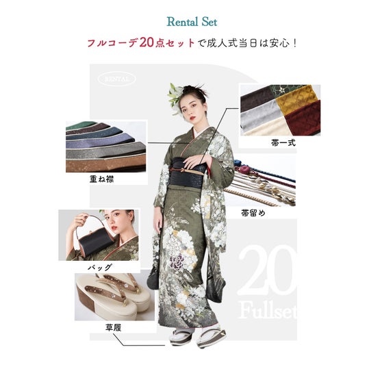 フルコーデ20セット付きで成人式当日は安心。専門スタッフがご希望に合わせてコーディネートいたします。