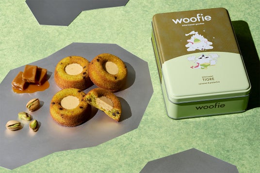 また、ウーフィでは初めてとなる缶のパッケージも見どころのひとつ。ピスタチオを連想させるグリーンの色合いと、季節を感じる装いが可愛らしい。お菓子を食べ終わった後も、ウーフィの世界でゆらゆらとにらめっこ。あなたの日常にウーフィが寄り添えると嬉しいです。