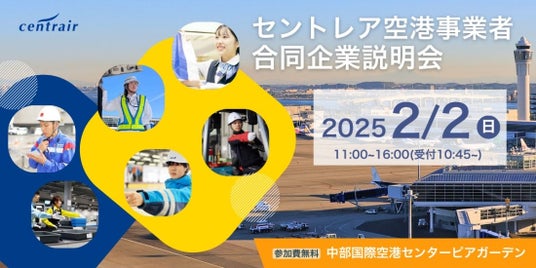 中部国際空港セントレア(以下セントレア)では、グランドハンドリング、給油、警備などを担う空港内事業者と連携して合同企業説明会を2025年2月2日(日)に開催します。
