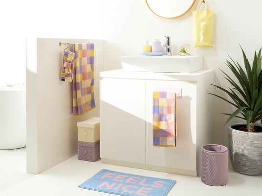 アートのようなバスマットや、カラフルで楽しいバスルームを演出するバス小物をラインアップ。