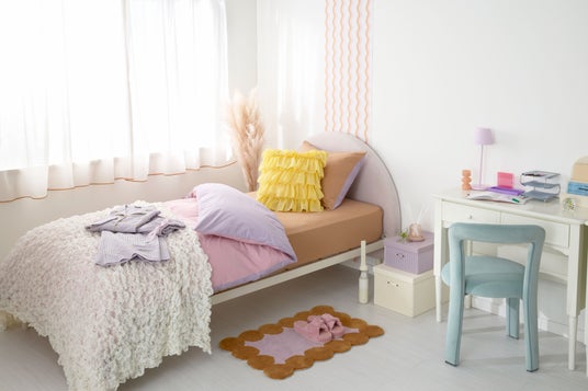 カラフルな組み合わせを楽しめる寝具カバーセットやマット、ベッドサイドアイテムをラインアップ。