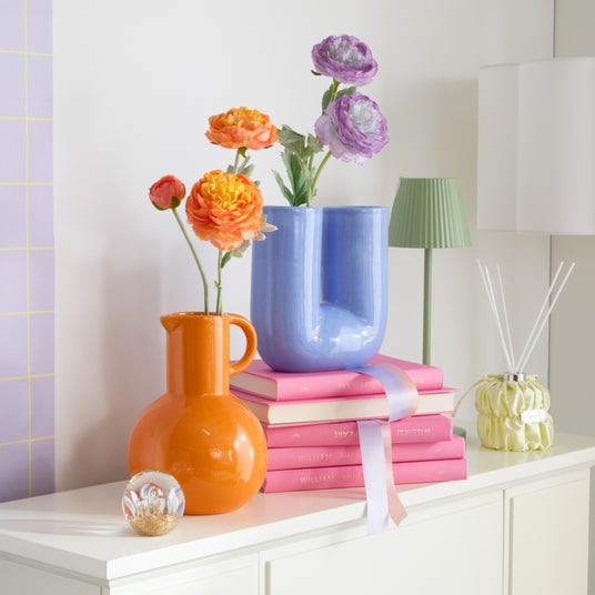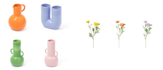 ポップなカラーのセラミックのフラワーベースです。華やかなガーベラやラナンキュラス等のアートフラワーとの組み合わせがおすすめ。複数並べてオブジェとしてもお楽しみいただけます。