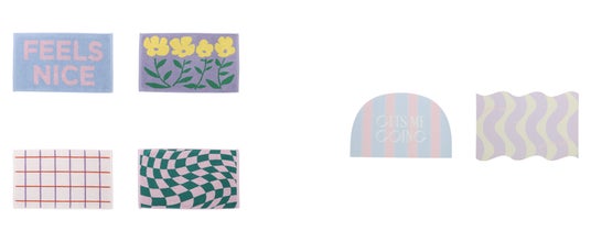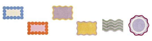 カラフルでポップな印象の変形マットです。ドットフレームやウェーブなど、遊び心あるデザインで、ベッドルームやコスメデスクの足元のアクセントにおすすめです。