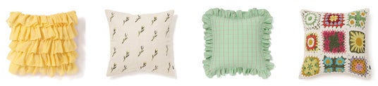 格子状に織り上げた生地にフリルがアクセントを加えたクッションカバーです。トレンドを取り入れた鮮やかな色の組み合わせが、お部屋にエネルギッシュな彩りを添えます。