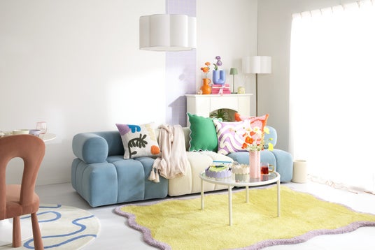色や形を自由に組み合わせて楽しめるソファをはじめとした、ポップで鮮やかなインテリアアイテムをラインアップ。
