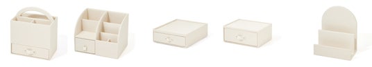 デスク周りの物を一気に収納できる、高級感のある合皮のデスクトップシリーズです。デスク周りに散らばりがちな付箋やコード類、充電アイテムやマウスなどをすっきり収納。用途に合わせてタイプをお選びいただけます。