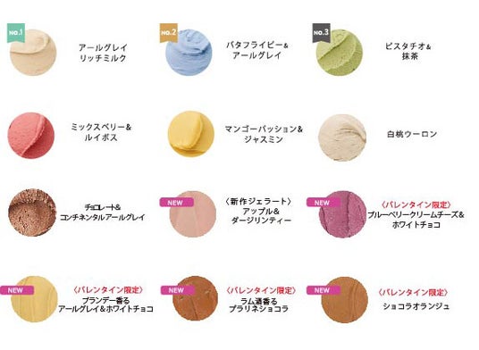 バレンタイン限定4種類を含む全12フレーバーの「香るティージェラート」も販売