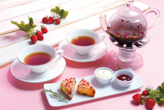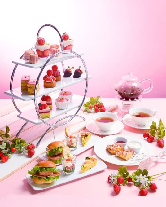 贅沢にイチゴをたっぷりと使った見た目にもかわいらしいスイーツやチョコレート、ホテルの水耕栽培で育ったバジルを使用したセイボリー、スコーンなどがお楽しみいただけます。