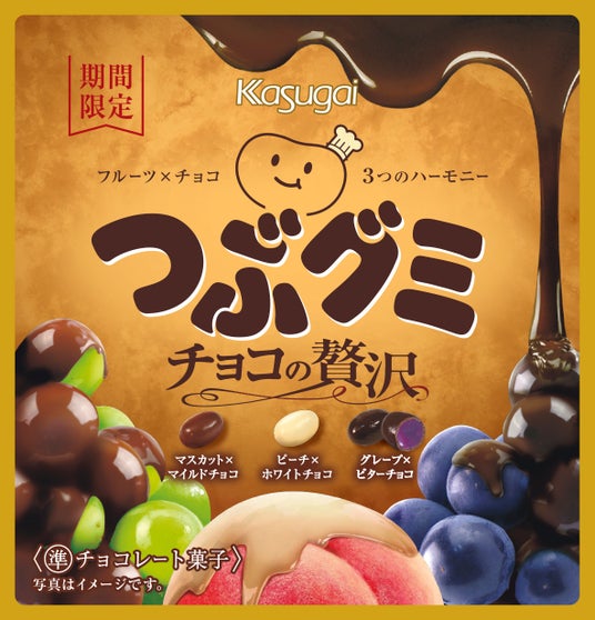 春日井製菓株式会社(本社:愛知県名古屋市西区、代表取締役社長 春日井大介、以下 春日井製菓)は、「つぶグミ」ブランドの人気商品「つぶグミチョコの贅沢」を1月20日(月)より発売いたします。マスカット×マイルドチョコ、ピーチ×ホワイトチョコ、グレープ×ビターチョコと、フルーツとチョコの組み合わせが生み出す3種のハーモニーをお楽しみいただけます。