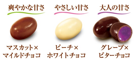 ・グレープ×ビターチョコ…グレープのジューシーさにビターな甘さがアクセントになった大人の味わい