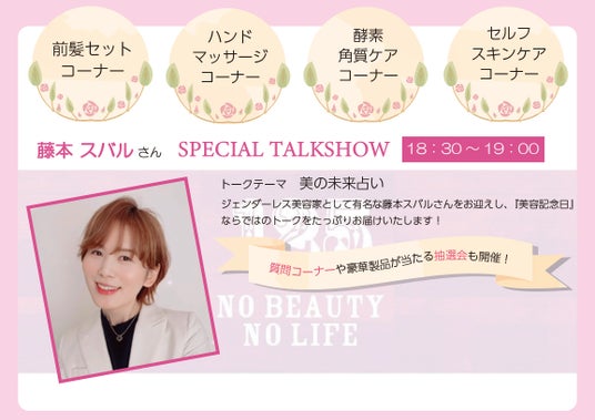 4つの美容体験と藤本スバルさんのスペシャルトークショーをお楽しみください