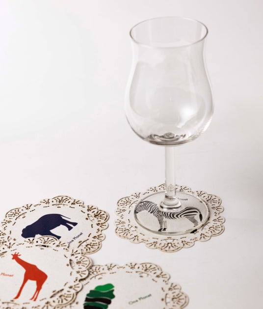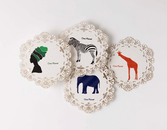こちらも厚紙を生かした製品。350g/平方メートル の用紙でコースターを製造。