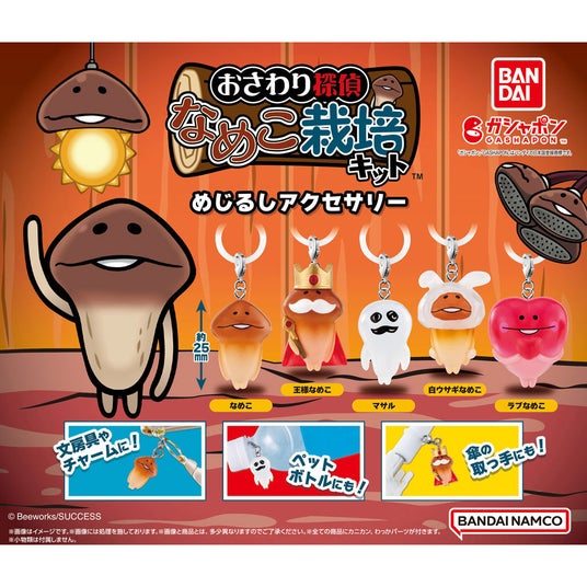 株式会社バンダイ ベンダー事業部(本社:東京都台東区)は、大人気スマホゲームアプリ「なめこ栽培キット」より『なめこ栽培キット めじるしアクセサリー』(1回300円・税10%込、全5種)を2025年1月第4週より全国のガシャポンバンダイオフィシャルショップ、玩具売り場・量販店・家電店などに設置されたガシャポン自販機シリーズにて発売いたします。
