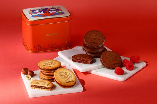 想いを一缶に込めて。バレンタインデーの贈り物には、フランセの新作スイーツを。「ラズベリー」と「ヘーゼルナッツ」の2味が入ったショコラサンドを限定販売。