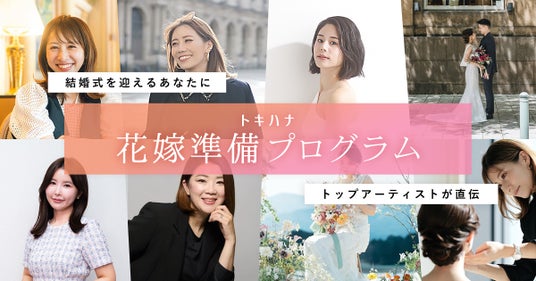 LINEでできる式場探し『トキハナ(https://tokihana.net/)』を運営する株式会社トキハナ(本社:東京都港区、代表取締役社長:安藤 正樹、以下 「トキハナ」)は、ウエディングの各界を代表するトップアーティスト5名とコラボレーションし、花嫁の結婚式準備をサポートする「花嫁準備プログラムvol.3」を開催します。