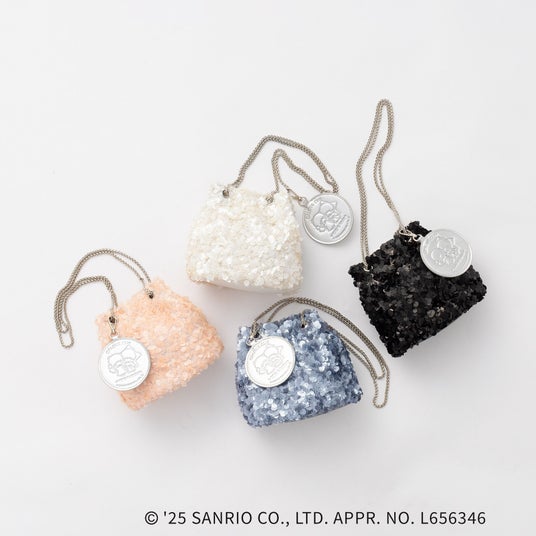 【キキ&ララのミラーチャームが付いた2WAYスパンコール巾着型ミニショルダー】
