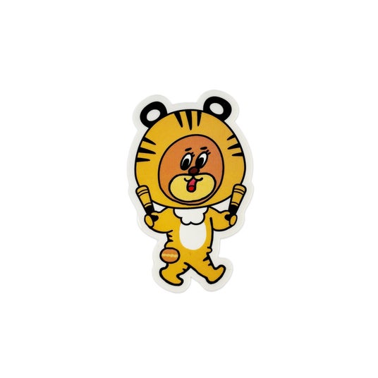 今回のPOP UP限定のステッカーが登場!トラの被り物をしたオリジナルキャラクターの「サトーくん」Sサイズステッカー(300円)を販売します。(限定アイテムのため売り切れ次第、販売終了となります)