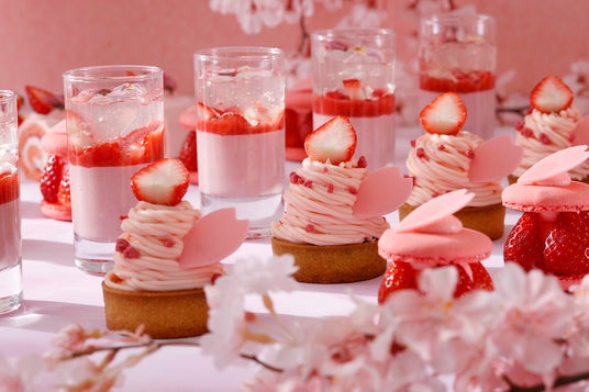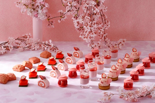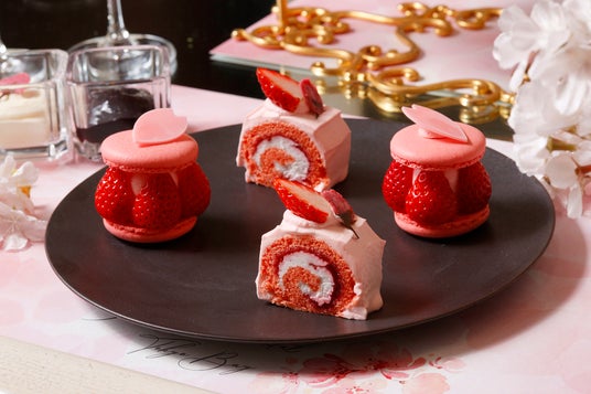 甘酸っぱいフレッシュないちごと桜の風味を掛け合わせたスイーツの数々