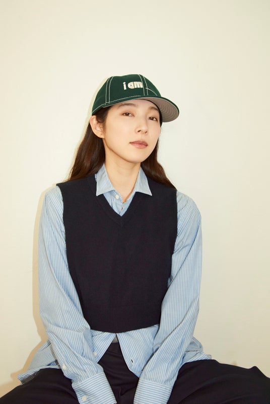 ウール生地を採用し、白いステッチでアクセントを付け、フロントには在原氏オリジナルロゴの”i am”を配したモデル