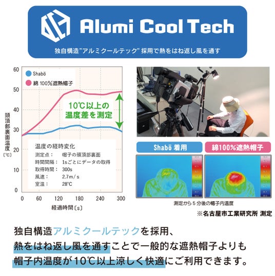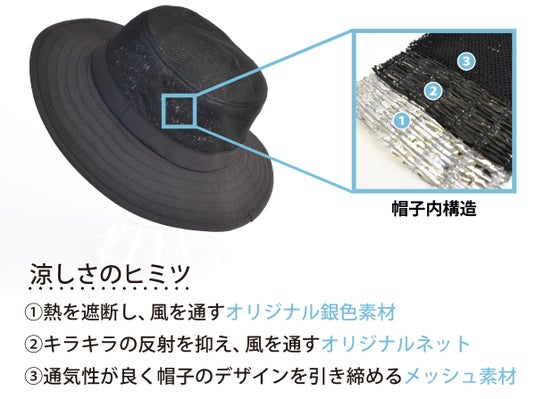 ■帽子内側に高遮熱&高通気オリジナル素材「アルミクールテック」を使用