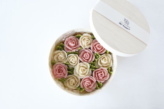 ギフトにもぴったりの【フラワーおはぎBOX】は、2色のバラの花を敷き詰めたデザインは白こし餡を使用して1つ1つ丁寧に花を絞り仕上げています。