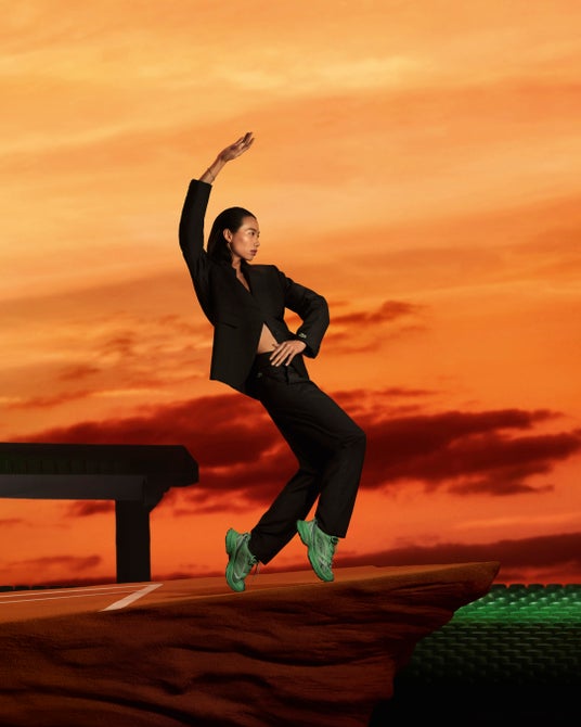 キャンペーンの中心は回転するステージ。テニスコートのクレイを使って作られ、ゲームのアイコニックな美学を称えます。シューズが人びとと可能性を結びつけ、爽やかなスタイリングと自信に満ちあふれた履きこなしを演出します。ステージは、今この瞬間、一つひとつのステップが大きな可能性に満ち、暗闇を凌駕し、光へと歩みを進める場所。そんな大胆で現代的なメッセージを発信しています。