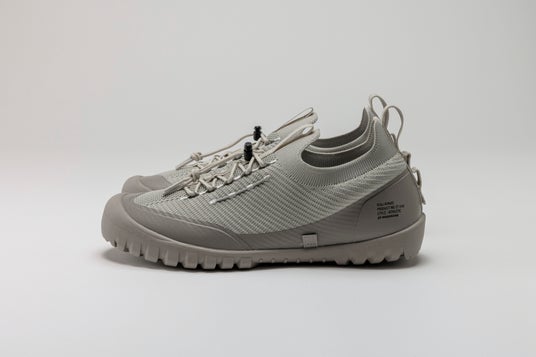 ムーンスターのワークシューズの根幹である地下足袋をデイリーユースに。アッパーには伸縮性のあるニット素材を採用し、日常生活でガードが必要な箇所には補強パーツを配置。コードの通し方で用途に合わせたフィッティングに調整可能。アーチをサポートしながらも足指をしっかりと使えるインソールを搭載。アウトソールはボリュームを抑えつつ爪先を保護し、クッション性にも配慮した構造。地下足袋のようにしなやかでグリップ力を持ち、機動力に優れたアスレチックタイプ。