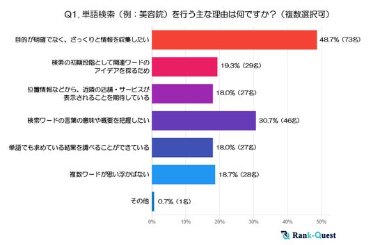 最も多かった回答は「目的が明確でなく、ざっくりと情報を収集したい」(48.7%)でした。10代の多くが「とりあえず何かを知りたい」という段階で単語検索を行っていることがわかります。