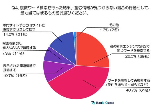 また、情報が見つからないときには「ワードを調整して再検索する」という声が最も多く、諦めずに試行錯誤を重ねる意欲も強いことが明らかになりました。