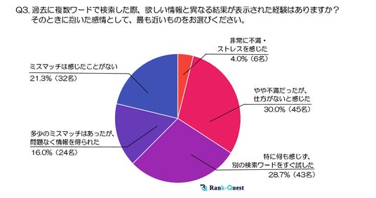 調査結果3.:過去に複数ワードで検索した際、欲しい情報と異なる結果が表示された経験はありますか? そのときに抱いた感情として、最も近いものをお選びください。