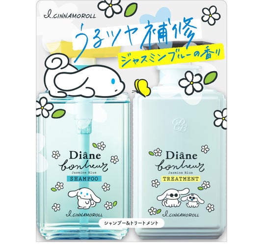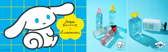 そんなダイアンボヌールと「I.CINNAMOROLL」のそれぞれが大事にする”自分自身を愛する”という想いが重なり、コラボレーションの実現に至りました。ダイアンボヌールで人気のドライシャンプーに「I.CINNAMOROLL」のイラストが描かれたアイテムは全国のドラッグストアを始めとした店舗でお買い求めいただけます。