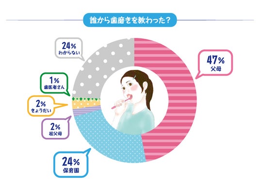 歯磨きの方法を教わったことがある人に選ばれたのは、父母が最多でした。