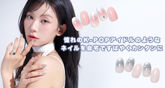 ネイルチップのデザインはK-POPアイドル御用達ネイリスト「シン タミナ」がセレクトした今流行りの韓国ネイル。シンプルさの中に遊び心を加えたファッションやメイクにも合わせやすいデザインが6種類登場。どれも簡単に爪に貼るだけで憧れのアイドルのようなネイルをお楽しみいただけます。