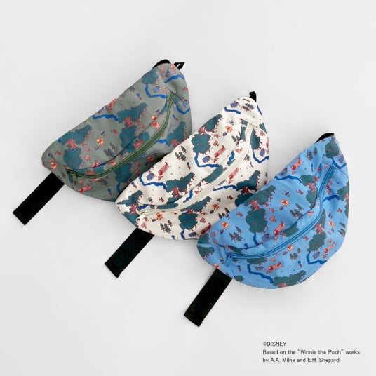 「100エーカーの森」と森に住む仲間たちがデザインされたボディバッグ。内側にもポケットがついており、可愛さだけでなく機能性も兼ね備えたアイテムです。