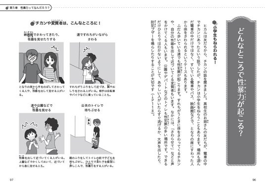 COMIC8どんなものが性暴力?/どんな性暴力があるの?/どんなところで性暴力が起こる?/もしも性被害にあってしまったら/大人の方へ 子どもの様子に気をつけて。もしも被害にあったら適切に対応を/5章のポイント