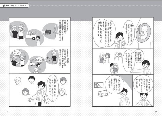 読者対象は主に小学校高学年以上の子どもとその保護者。小学校高学年の子どもが読めるように文章にはルビをふっています。子どもは章の前半のマンガページを読んで最低限身に付けてほしい性の知識を学びます。マンガページの後には、保護者を対象に詳しい説明や親子のコミュニケーションのコツを解説しています。