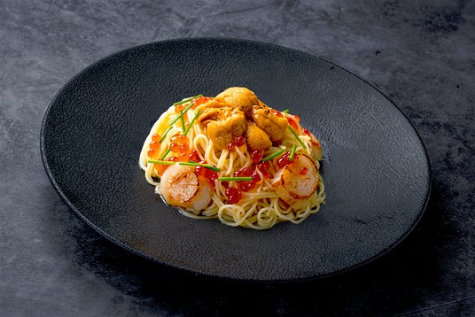 鮮度抜群!ミョウバン不使用!生ウニ本来の味を楽しめる!北海道産塩水ウニ、北海道産ホタテ、いくらを贅沢に!夏にぴったりの冷製スパゲティ!が新登場!