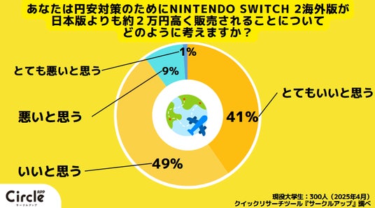 あなたは円安対策のために抽選予約に条件があることについてどのように思いますか?という質問に対し、とてもいいと思うと回答した人は41%、いいと思うと回答した人は49%、悪いと思うと回答した人は9%、とても悪いと思うと回答した人は1%でした。