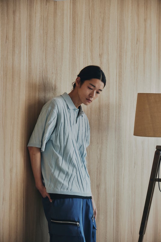カジュアルな印象のポロシャツを、こだわりの編みやシルエットによりクリーンなテイストに昇華させたtk.TAKEO KIKUCHIの『サマーニットポロシャツ』。