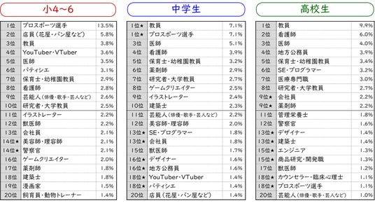 *なりたい職業が「ある」と回答したのは、小4~6生1,872名、中学生1,403名、高校生1,100名。