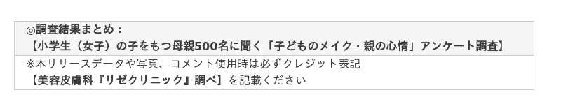そこで、全国26院を展開する美容皮膚科『リゼクリニック』(医療法人社団風林会 東京都新宿区 総院長 赤塚正洋)は2025年5月22日~23日の2日間、女子小学生を子にもつ母親500名を対象に【「子どものメイク・親の心情」のアンケート調査】を実施(インターネット調査)。小学生のメイクへの興味や実態、母親の心情についてほか、調査を行ないました。
